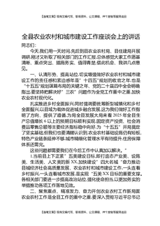 全县农业农村和城市建设工作座谈会上的讲话.docx
