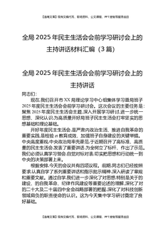 全局2025年民主生活会会前学习研讨会上的主持讲话材料汇编(3篇).docx