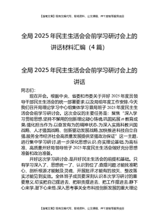 全局2025年民主生活会会前学习研讨会上的讲话材料汇编(4篇).docx