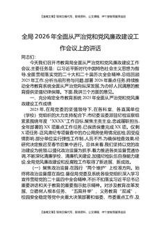 全局2026年全面从严治党和党风廉政建设工作会议上的讲话.docx
