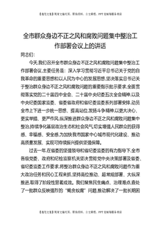 全市群众身边不正之风和腐败问题集中整治工作部署会议上的讲话.docx