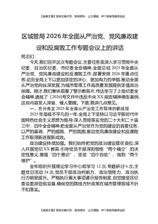 区城管局2026年全面从严治党、党风廉政建设和反腐败工作专题会议上的讲话.docx