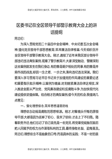 区委书记在全区领导干部警示教育大会上的讲话提纲.docx