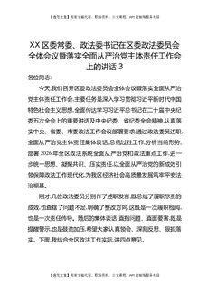 XX区委常委、政法委书记在区委政法委员会全体会议暨落实全面从严治党主体责任工作会上的讲话3.docx