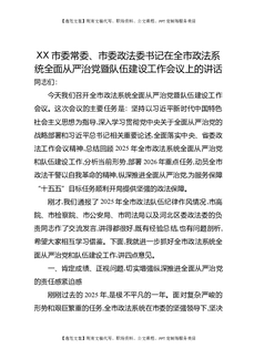 XX市委常委、市委政法委书记在全市政法系统全面从严治党暨队伍建设工作会议上的讲话.docx