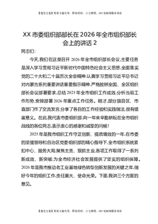 XX市委组织部部长在2026年全市组织部长会上的讲话2.docx