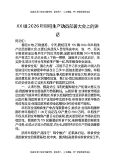XX镇2026年早稻生产动员部署大会上的讲话.docx