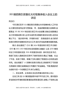 XX镇招商引资暨壮大村级集体收入会议上的讲话.docx