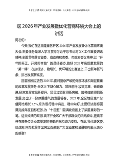 区2026年产业发展暨优化营商环境大会上的讲话.docx