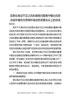 区群众身边不正之风和腐败问题集中整治攻坚决战年暨优化营商环境动员部署会议上的讲话.docx