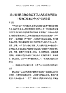 某乡镇书记在群众身边不正之风和腐败问题集中整治工作推进会上的讲话提纲.docx