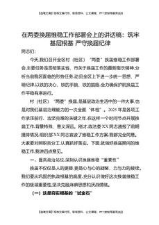 在两委换届维稳工作部署会上的讲话稿:筑牢基层根基,严守换届纪律.docx
