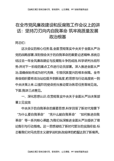 在全市党风廉政建设和反腐败工作会议上的讲话:坚持刀刃向内自我革命,筑牢高质量发展政治根基.docx
