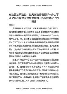 在全面从严治党、党风廉政建设暨群众身边不正之风和腐败问题集中整治工作专题会议上的讲话.docx