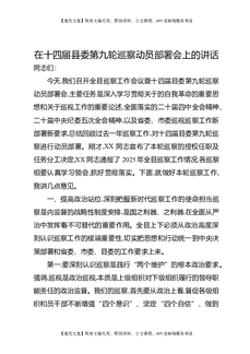 在十四届县委第九轮巡察动员部署会上的讲话.docx