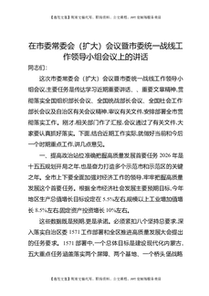 在市委常委会(扩大)会议暨市委统一战线工作领导小组会议上的讲话.docx