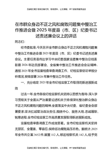 在市群众身边不正之风和腐败问题集中整治工作推进会暨2025年度县(市、区)纪委书记述责述廉会议上的讲话.docx