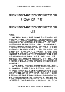 在领导干部集体廉政谈话暨警示教育大会上的讲话材料汇编(5篇).docx