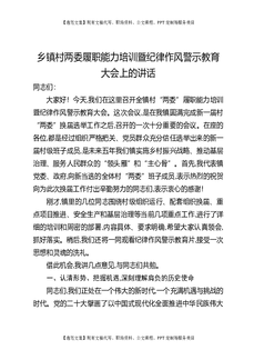乡镇村两委履职能力培训暨纪律作风警示教育大会上的讲话.docx