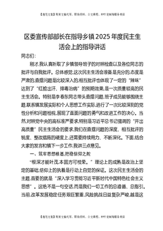 区委宣传部部长在指导乡镇2025年度民主生活会上的指导讲话.docx