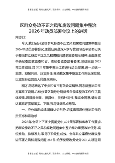 区群众身边不正之风和腐败问题集中整治2026年动员部署会议上的讲话.docx