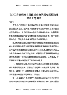 在XX县高标准农田建设突出问题专项整治推进会上的讲话.docx