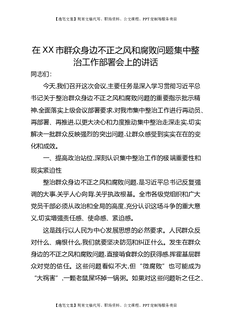 在XX市群众身边不正之风和腐败问题集中整治工作部署会上的讲话.docx