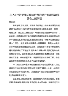 在XX社区党委环境综合整治提升专项行动部署会上的讲话.docx