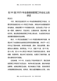 在XX县2025年全县绩效管理工作会议上的讲话.docx