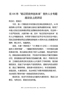 在XX市“铭记历史共创未来”党外人士专题座谈会上的讲话.docx