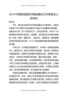 在XX市委统战部全市统战重点工作推进会上的讲话.docx