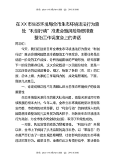 在XX市生态环境局全市生态环境违法行为查处“利剑行动”推进会暨风险隐患排查整治工作调度会上的讲话.docx
