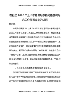 在社区2026年上半年意识形态和网络意识形态工作部署会上的讲话.docx