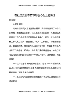 在社区党委春节节后收心会上的讲话.docx