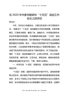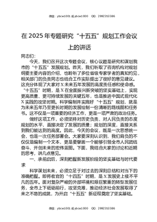 在2025年专题研究“十五五”规划工作会议上的讲话.docx
