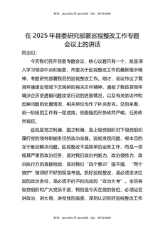 在2025年县委研究部署巡视整改工作专题会议上的讲话.docx