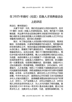 在2025年镇村(社区)后备人才培养座谈会上的讲话.docx