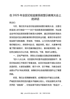 在2025年全区纪检监察系统警示教育大会上的讲话.docx