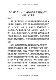 在2025年全市公文抄袭问题专项整治工作会议上的讲话.docx