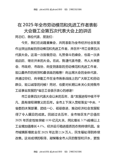 在2025年全市劳动模范和先进工作者表彰大会暨工会第五次代表大会上的讲话.docx