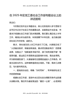 在2025年区党工委社会工作部专题会议上的讲话提纲.docx