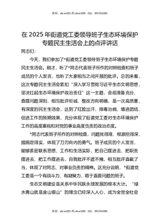 在2025年街道党工委领导班子生态环境保护专题民主生活会上的点评讲话.docx