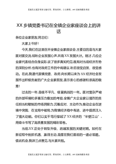 XX乡镇党委书记在全镇企业家座谈会上的讲话.docx