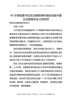 XX乡镇党委书记在全镇营商环境优化提升暨企业家座谈会上的讲话.docx
