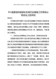 XX县委组织部部长在党代会筹备工作领导小组会议上的讲话.docx