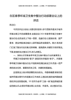 在区春季环境卫生集中整治行动部署会议上的讲话.docx