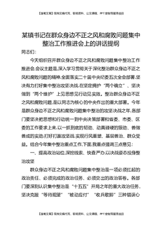 某镇书记在群众身边不正之风和腐败问题集中整治工作推进会上的讲话提纲.docx
