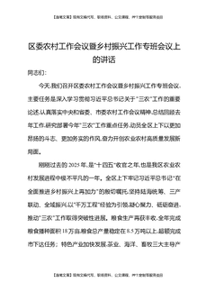 区委农村工作会议暨乡村振兴工作专班会议上的讲话.docx