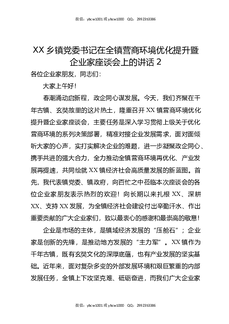 XX乡镇党委书记在全镇营商环境优化提升暨企业家座谈会上的讲话2.docx