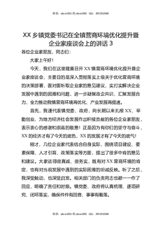 XX乡镇党委书记在全镇营商环境优化提升暨企业家座谈会上的讲话3.docx